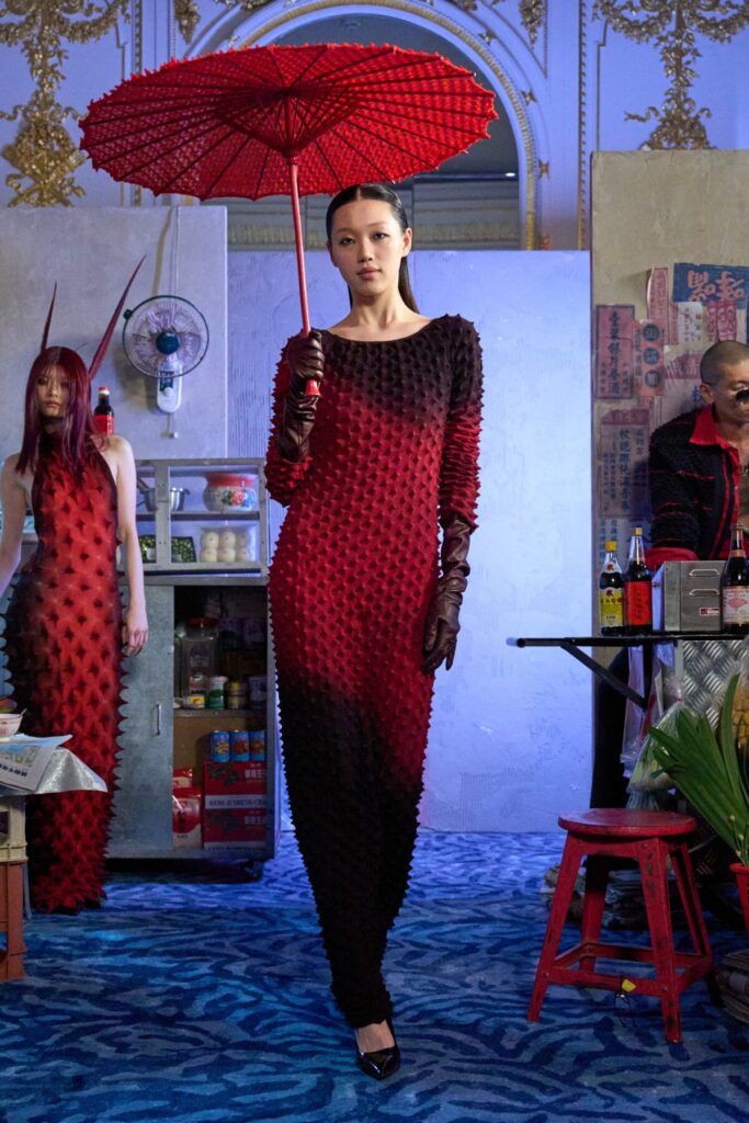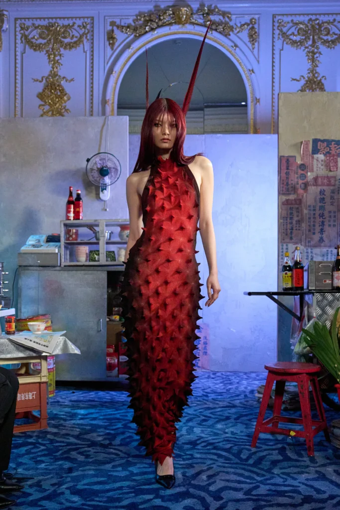 After briefly stepping back from the wholesale treadmill, Lo has emerged with renewed clarity. Fall 2026 suggests a designer no longer confined to the label of “spiky knit specialist.” Instead, he positions himself as a cultural architect—designing experiences as much as garments.