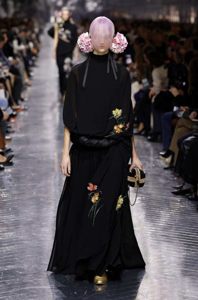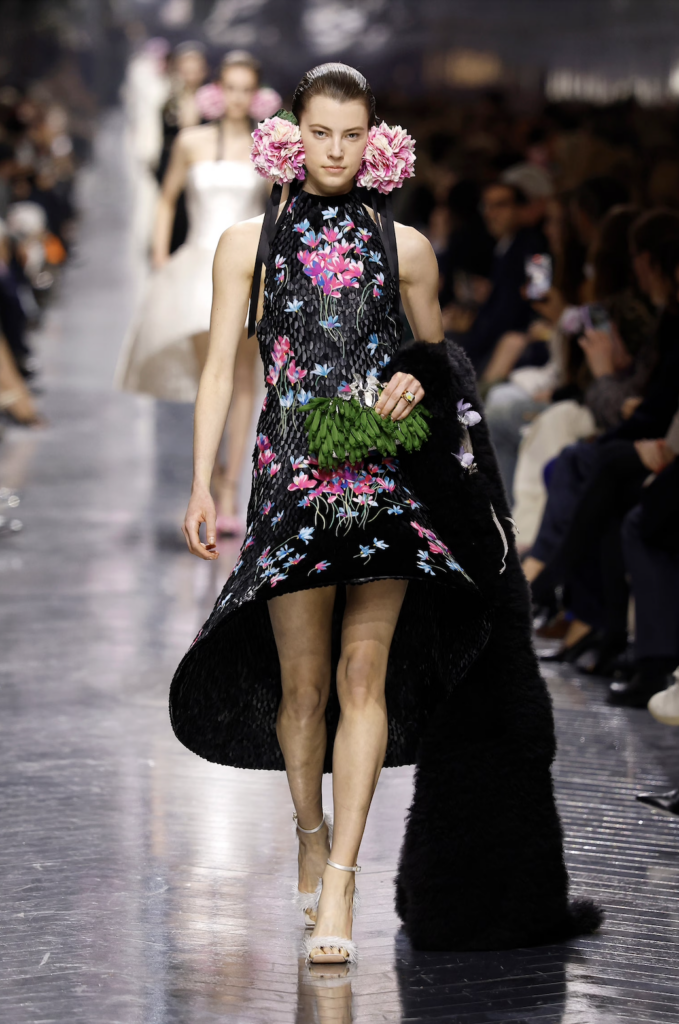 Before the show, Anderson shared a formative anecdote. As a child in Ireland, he searched the Yellow Pages for the number of John Galliano, determined to ask for an internship—only to discover he had phoned a taxi service. Decades later, that childhood curiosity culminated in his first couture collection for the very house Galliano once led. In a poetic gesture of continuity, Galliano recently gifted Anderson a bouquet of cyclamen—flowers that became the symbolic thread running through this debut.