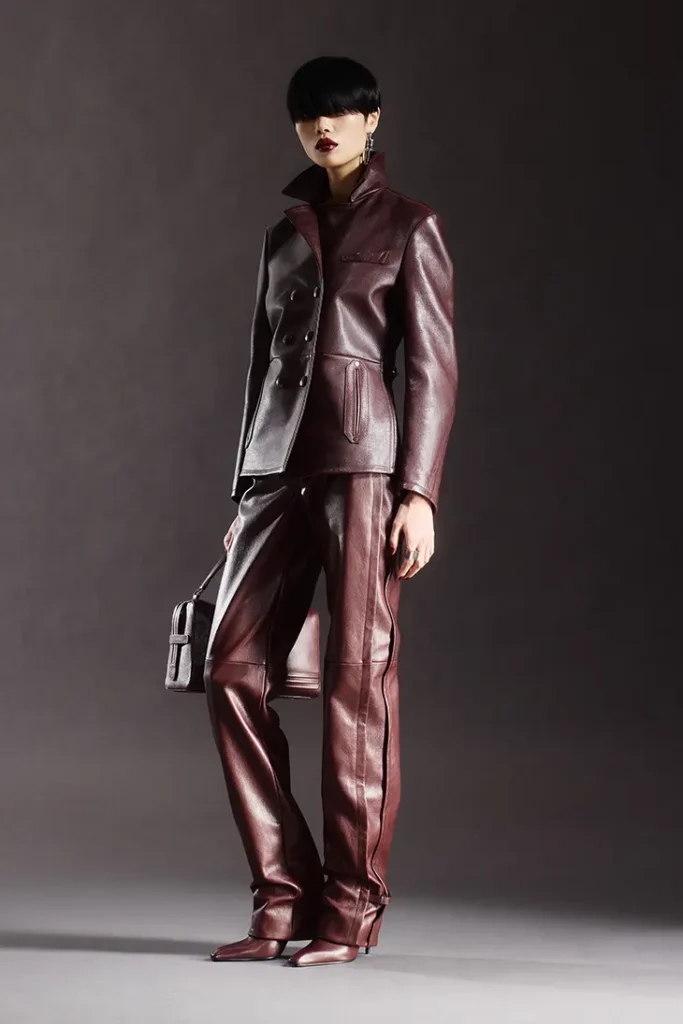 Throughout, tailoring anchors the collection. Pencil-skirt suits, elongated coats, and sharply cut jackets emphasize verticality, sculpting the body without exaggeration. Iannone’s strength lies in restraint: silhouettes are disciplined, but never rigid. Even the most fitted pieces are engineered with wearability in mind, reinforcing Ferrari’s philosophy that design should serve movement, not restrict it.