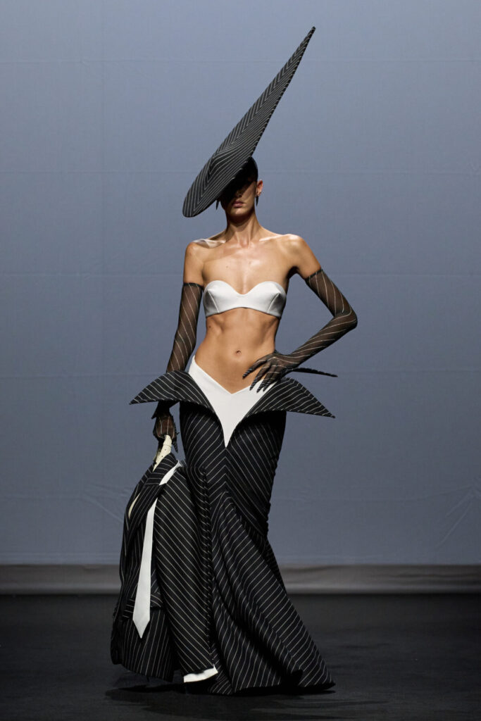 With his Fall 2025 Couture collection, Robert Wun once again defies convention, presenting fashion not as something to be worn, but as a medium for philosophical exploration. This was couture as ritual, as transformation, as a fever dream with razor-sharp tailoring. He’s not dressing consumers—he’s staging a cinematic opera about what it means to become.