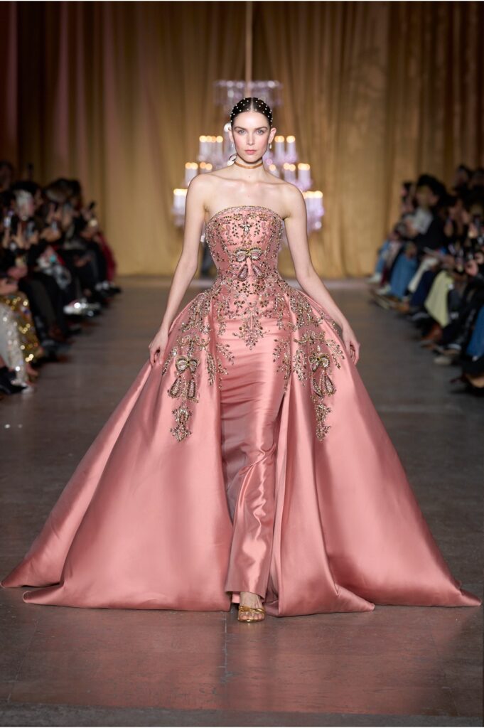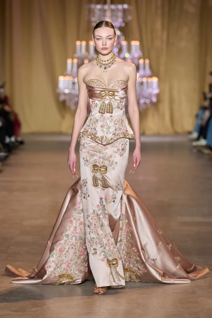 From an industry perspective, Chiaroscuro operates as both aesthetic spectacle and cultural commentary. Murad is among the few designers this season to openly acknowledge global instability and translate that awareness into couture storytelling. His response is not minimalism, but magnified beauty.