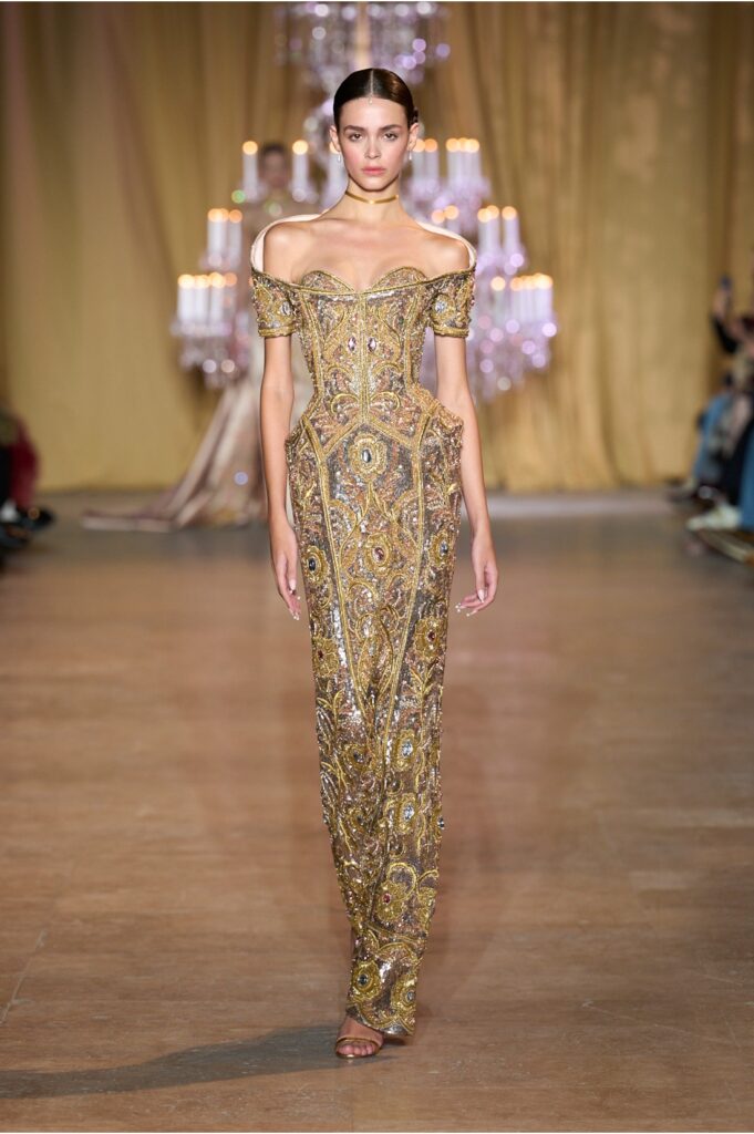 Murad’s continued emphasis on the hourglass also signals a broader shift back toward structured femininity in couture. While contemporary fashion often leans into fluid neutrality, Murad unapologetically centers sensuality and sculptural form. His vision of empowerment lies in celebrating the body, not abstracting it.